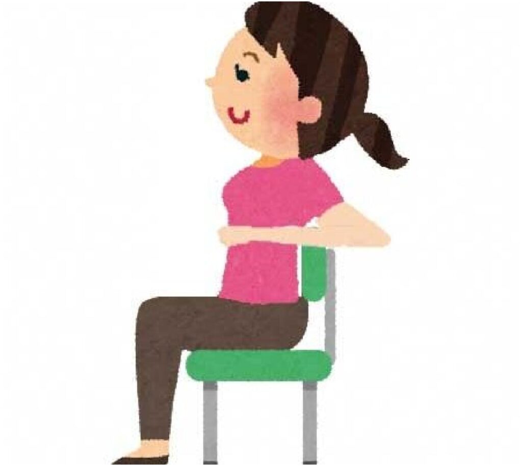 ①猫背を防ぐ: 寒いとつい背中を丸めがちですが、背筋を伸ばして正しい姿勢を保ちましょう。椅子に座る際は深く腰掛け、背もたれに背中を預けるようにします。