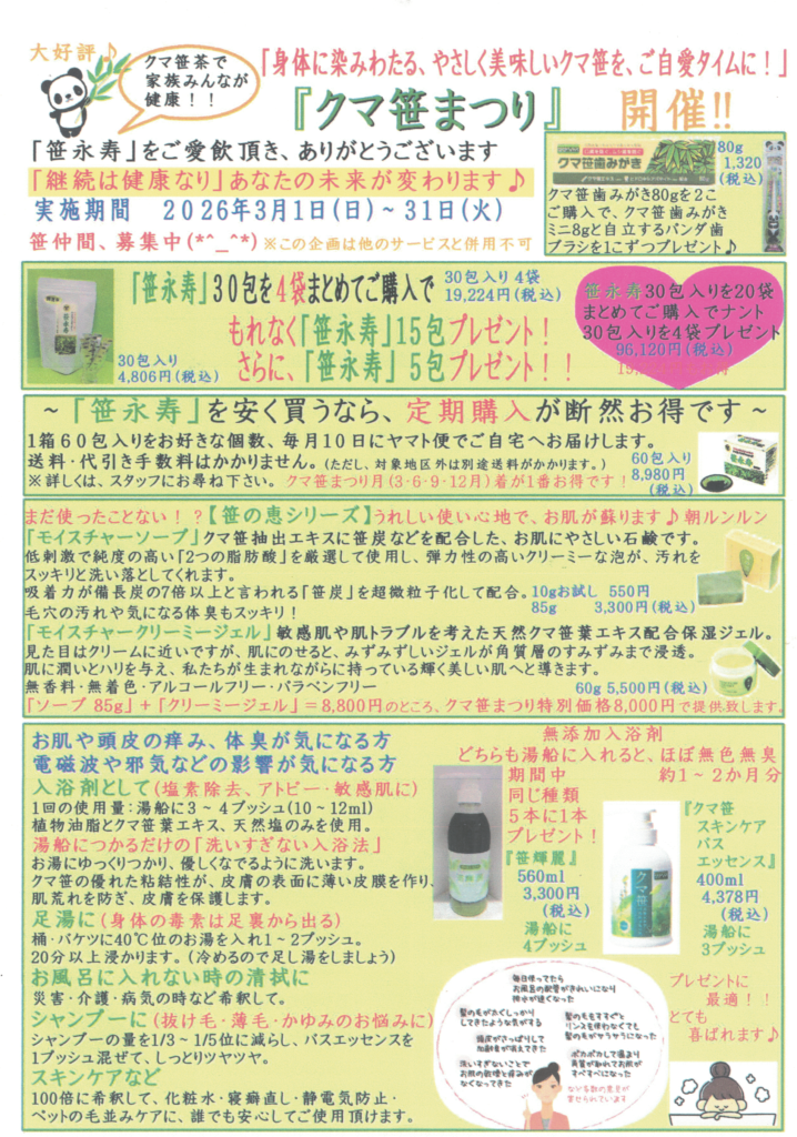 **春の健康応援企画『クマ笹まつり』**を開催いたします!