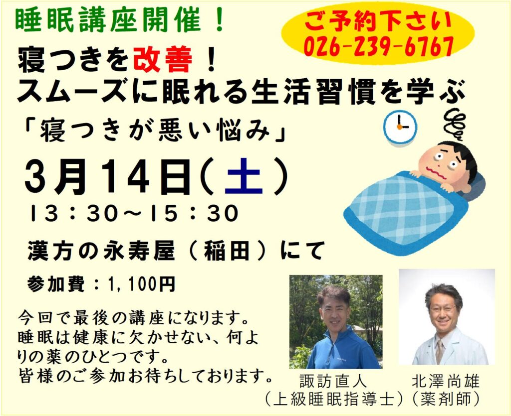 漢方の永寿屋2階にて 睡眠講座を開催します!